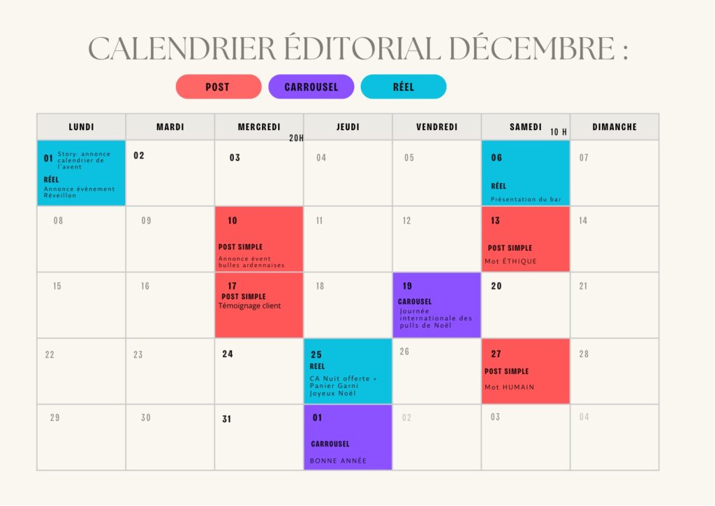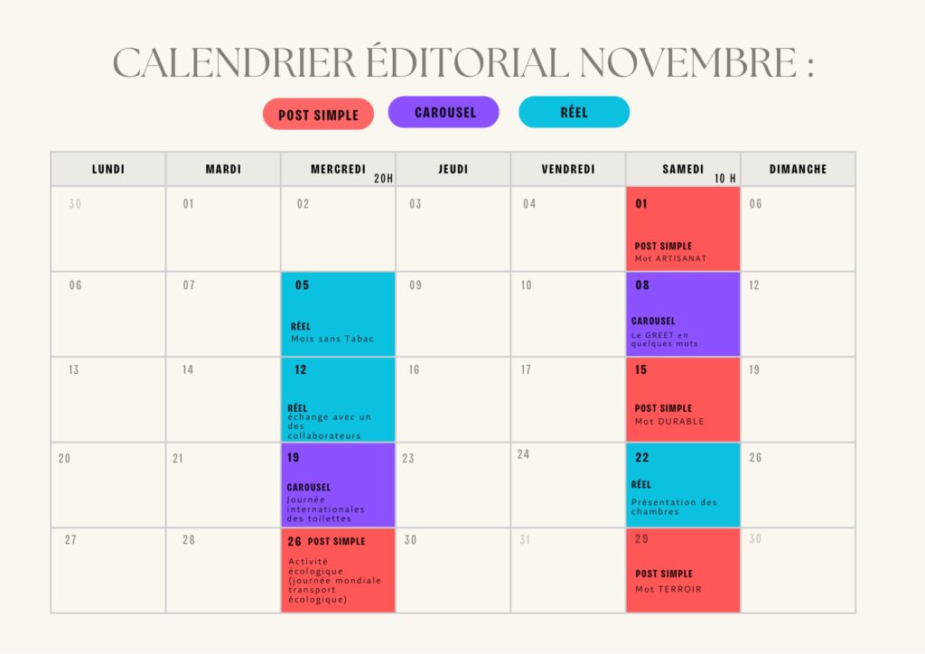 Création de deux calendriers éditoriaux afin d’organiser et planifier les publications.