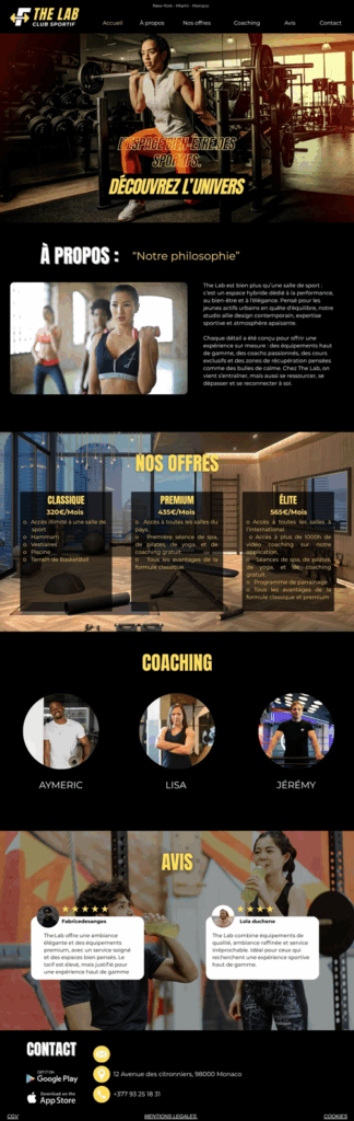 Expérience premium : un site pensé pour refléter l’univers haut de gamme de The Lab et séduire une clientèle exigeante.