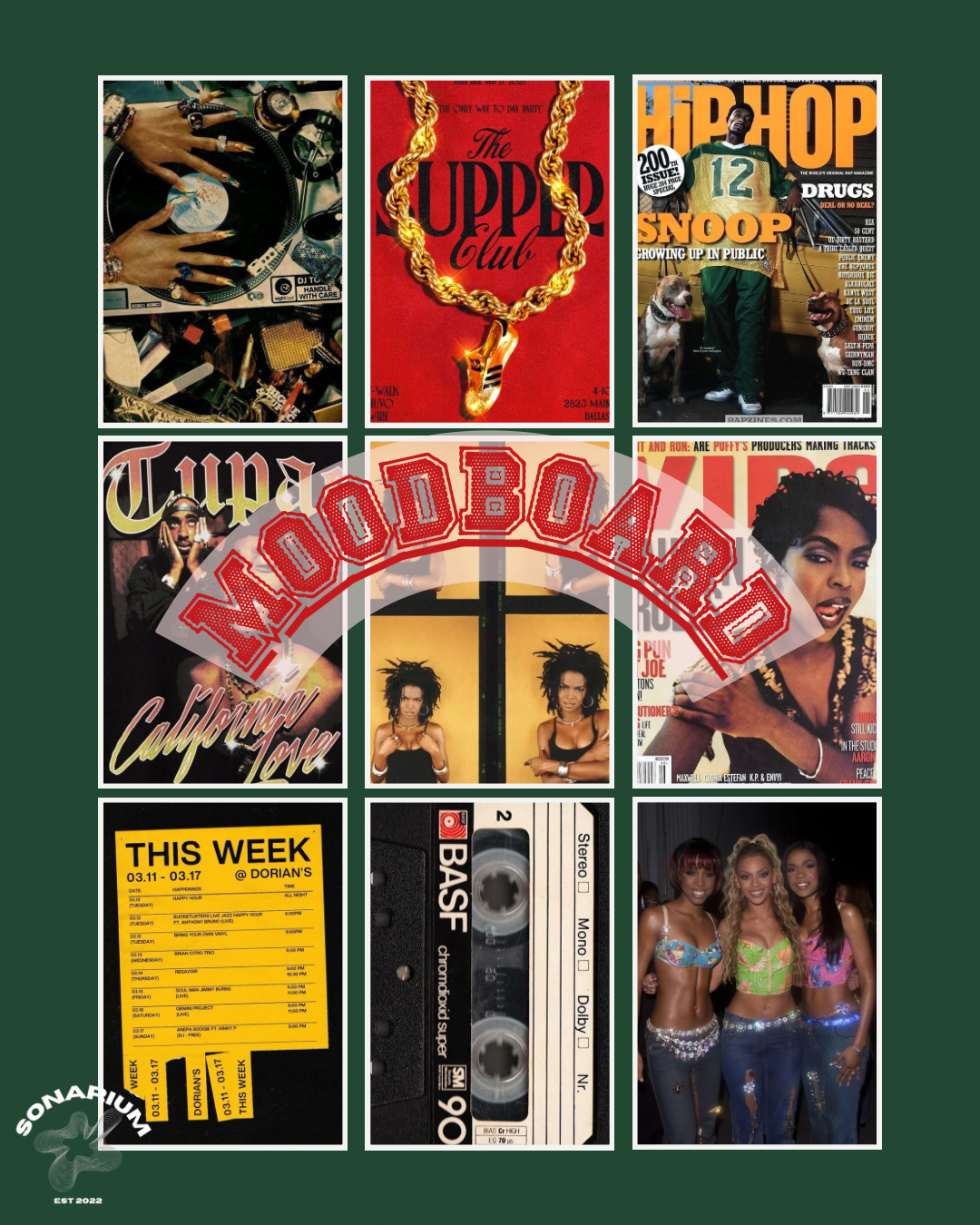 Conception d’un moodboard afin de définir l’ambiance rétro et les inspirations visuelles.